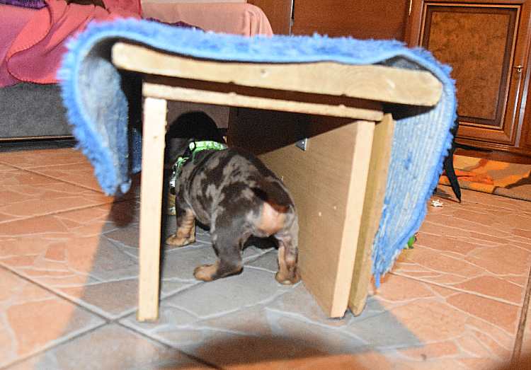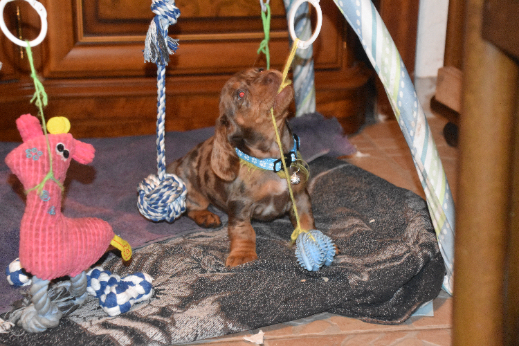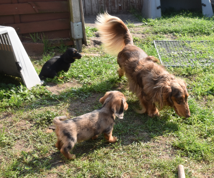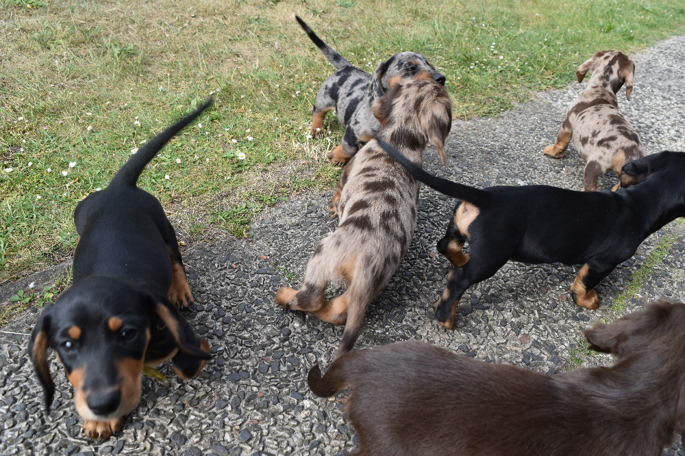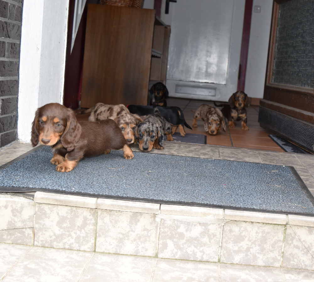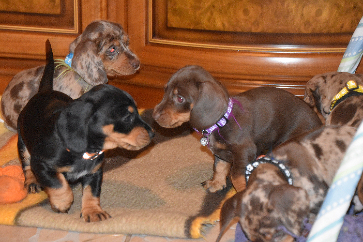 In der Prägungsphase (4 bis 7. Woche) lernen Welpen andere Hunde aus dem Rudel kennen, sie müssen sich an das Tragen von Halsbändern gewöhnen, sie fahren mit dem Auto kleine Touren und reagieren auf Wischer, Staubsauger, Waschmaschine, Föhn, laufen im Gras, auf Erde, auf Steinen und Fliesen sowie Teppich. Sie dürfen an Kartons, Holzrinde, Eierpappen und Hundespielzeugen ihre Zähnchen austesten. Sie müssen fernsehen, laute Musik hören und Rollstuhl und Krücken sehen.